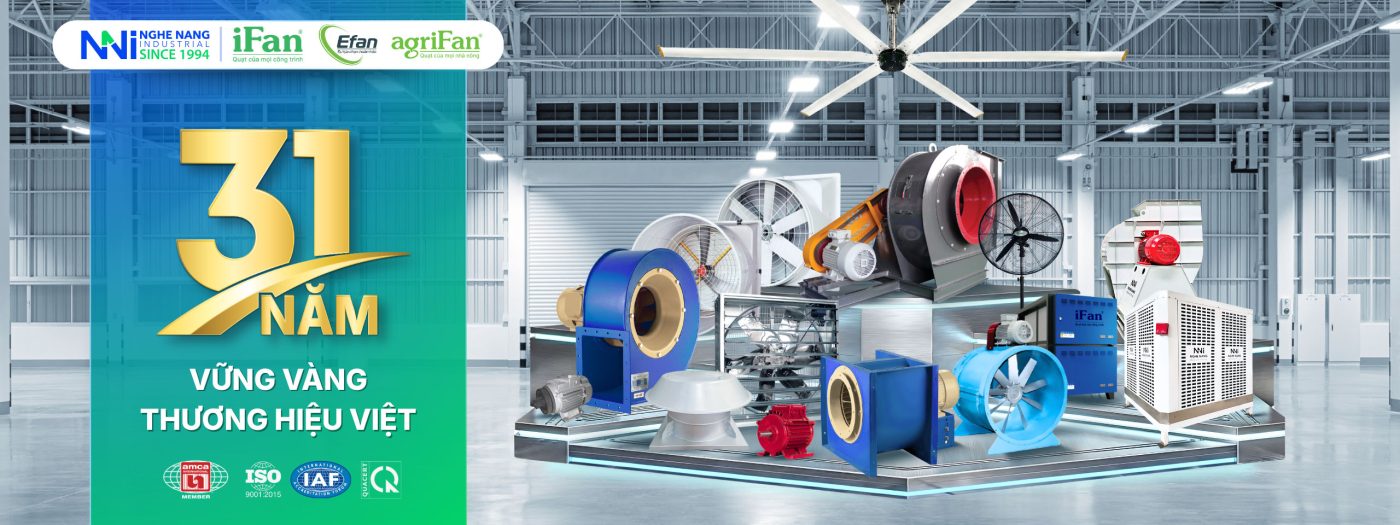 iFan và eFan – chuyên về quạt công nghiệp, máy làm mát và thiết bị xử lý không khí. Với nhà xưởng hiện đại, chứng nhận ISO 9001:2015 và mạng lưới phân phối rộng khắp, công ty khẳng định vị thế thương hiệu uy tín, mang đến giải pháp tối ưu cho hàng nghìn nhà xưởng, công trình trên toàn quốc.